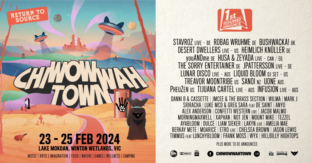 Chi Wow Wah Town, el festival boutique de música electrónica, arte, actuaciones y bienestar de Australia, celebra su décimo aniversario regresando al Lago Mokoan, Winton Wetlands, Victoria, del 23 al 25 de febrero de 2024.