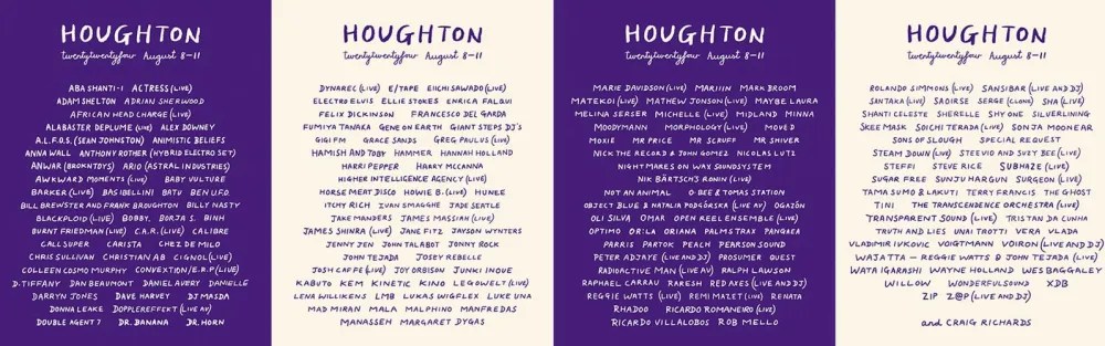 El Houghton Festival ofrece música continua, sets de DJ extendidos, actuaciones sorpresa de back-to-back y una experiencia íntima. Los organizadores prestan gran atención a los detalles y a la calidad del sonido, asegurándose de que cada escenario tenga sus propias características sonoras. The Warehouse contará con un sistema de sonido Soundscape de 360 grados, creando una experiencia audiovisual inmersiva.